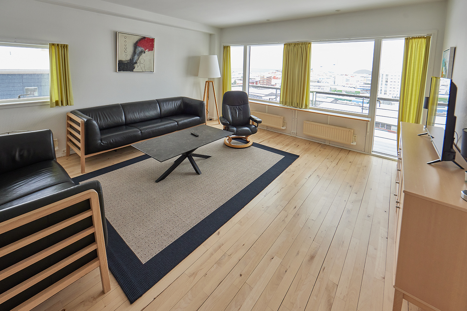 Nuuk Hotel Apartments by HHE tilbyder fuldt udstyrede lejligheder med separate sove- og opholdsområder, køkken og spiseplads. Ideelt til længere ophold og gæster, der ønsker frihed og komfort, med enestående udsigt over fjord og fjeldlandskab i Nuuk.