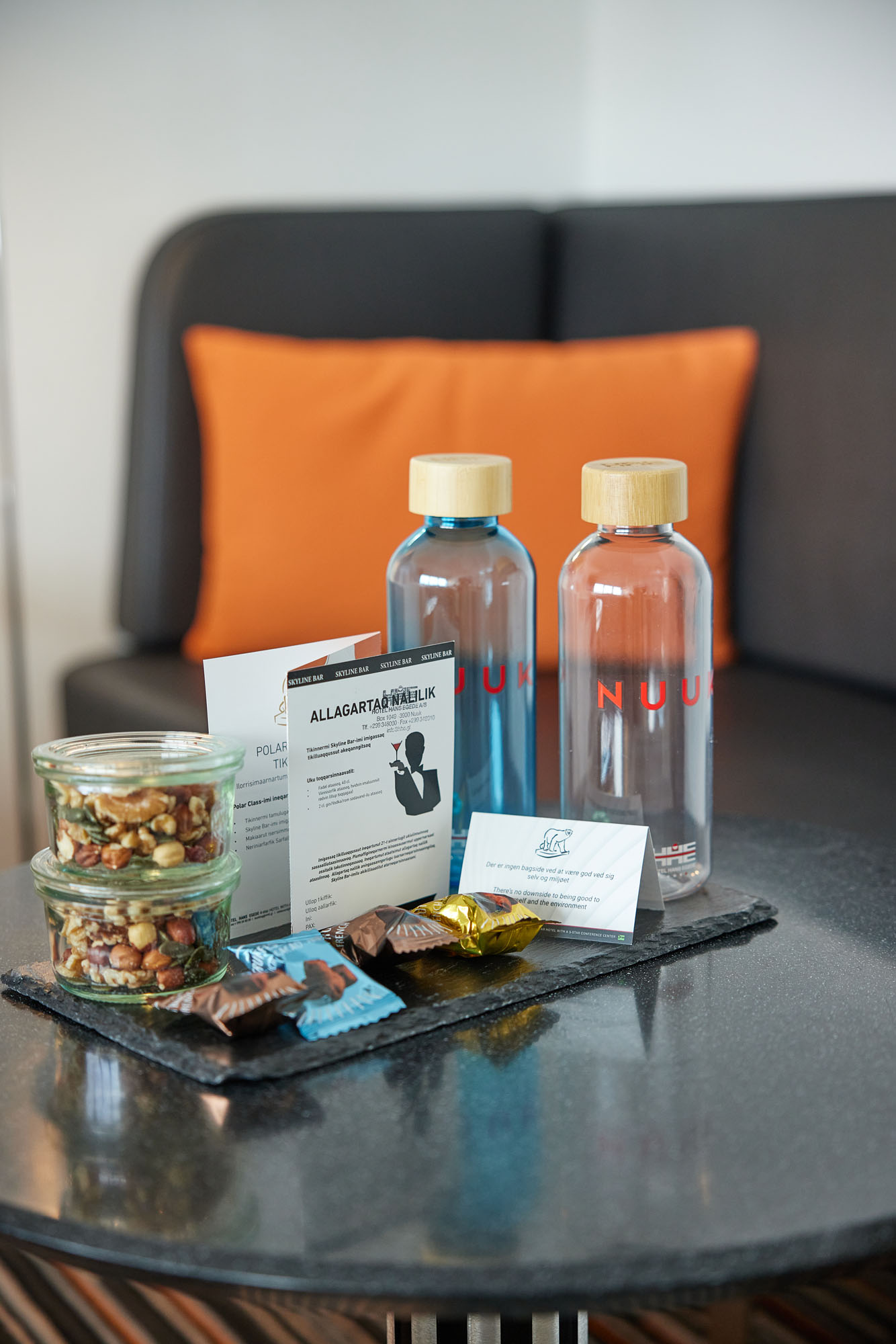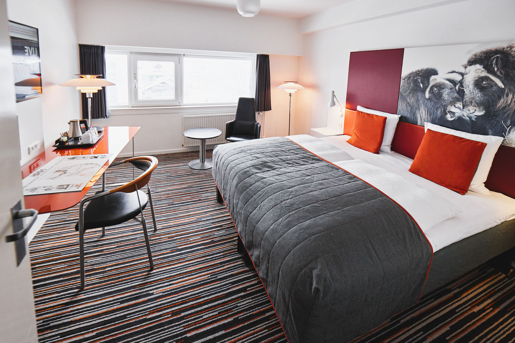 Du kan blandt andet tage turen til toppen af hotellet, hvor du finder vores Restaurant Sarfalik Fisk og Skaldyr. Her tilbyder vi en madoplevelse baseret på lokale råvarer, med inspiration fra blandt andet Frankrig og Italien.