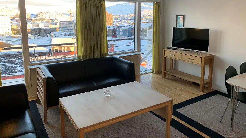 Enjoy the freedom of a private apartment with a fully equipped kitchen, dining area, and separate bedroom. Perfect for couples, business travelers, and extended stays. Most apartments offer beautiful views of the fjord, and you have access to the 24-hour staffed reception at Hotel Hans Egede, just 400 meters away.
