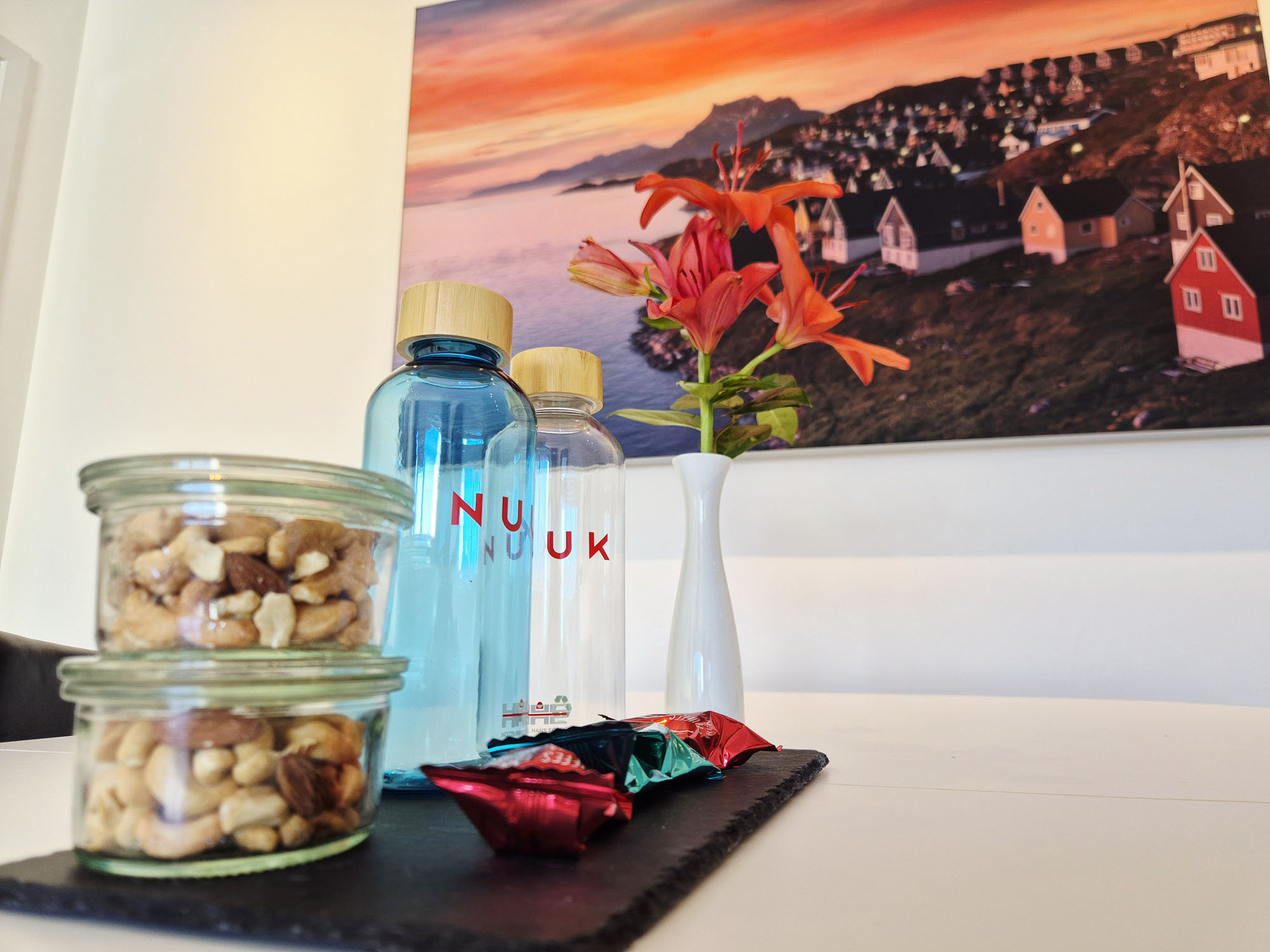 Mens du nyder dit ophold i suiten, hvorfor sÃ¥ ikke fuldende oplevelsen med en middag pÃ¥ vores eksklusive Restaurant Sarfalik Fisk & Skaldyr? Beliggende pÃ¥ 5. sal byder Sarfalik pÃ¥ en kulinarisk rejse med friskfangede fisk og skaldyr fra det arktiske hav. Her kan du nyde udsigten over Nuuk og fjorden, mens vores kokke tilbereder retter med lokale ingredienser og respekt for Grønlands unikke havmiljø.Â