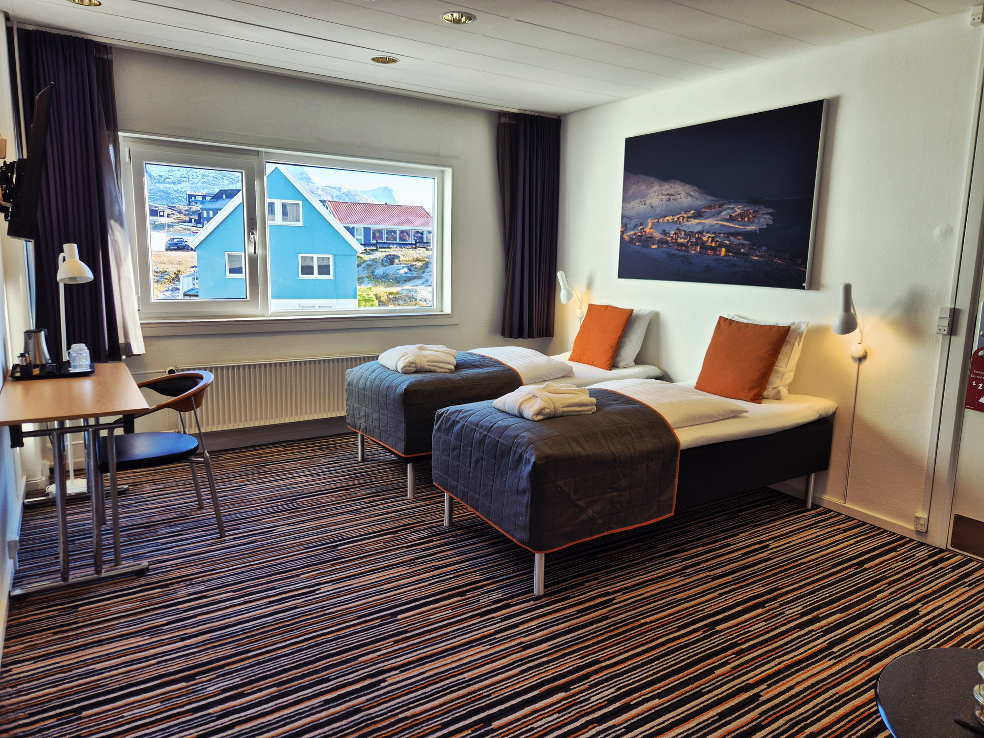 - 1 værelse med 2 enkeltsenge og sovesofa